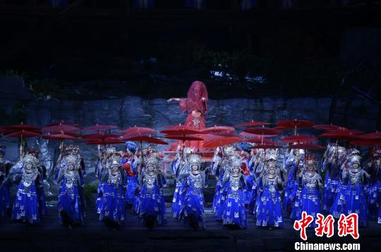 记者5日晚在现场看到,湘西的民俗、民乐、民情充分融入演出,包括独具湘西凤凰特色的吊脚楼,美丽纯净的苗族阿妹“翠翠”及柔美煽情的民族舞蹈和特色服装。