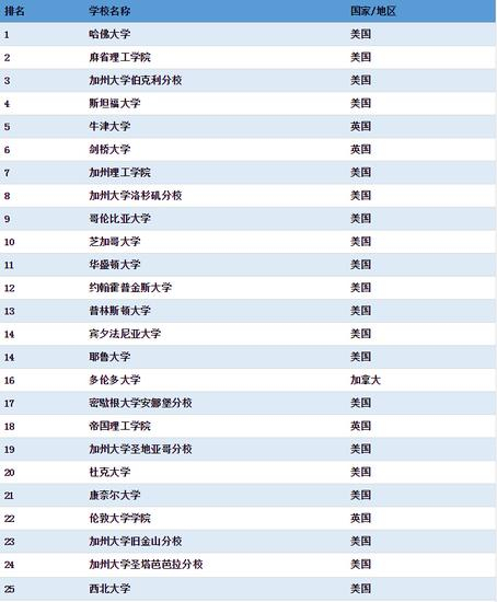 今年综合类榜单前10名分别是哈佛大学、麻省理工学院、加州大学伯克利分校、斯坦福大学、牛津大学、剑桥大学、加州理工学院、加州大学洛杉矶分校和哥伦比亚大学和芝加哥大学。