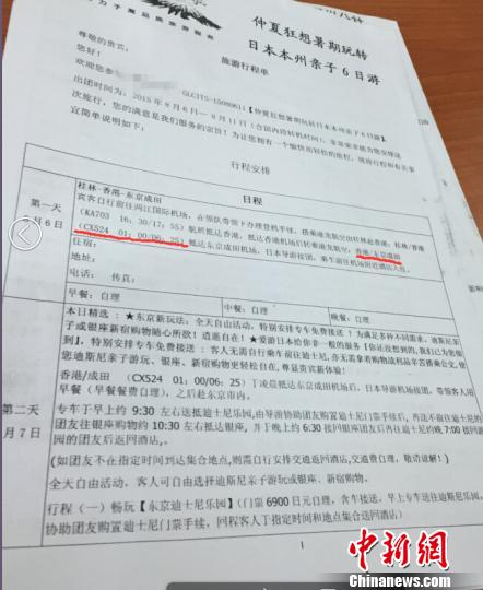 对于李红反应的几点投诉,桂林国旅柳州分社的总经理助理冯俊,拿出当时与李红等人签订的合同单逐条解释。记者看到冯俊出示的行程单上写的飞往日本的飞机确实是凌晨飞机,与实际无出入。