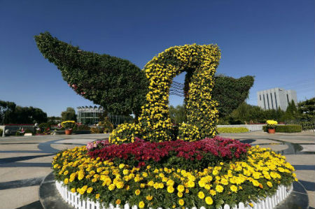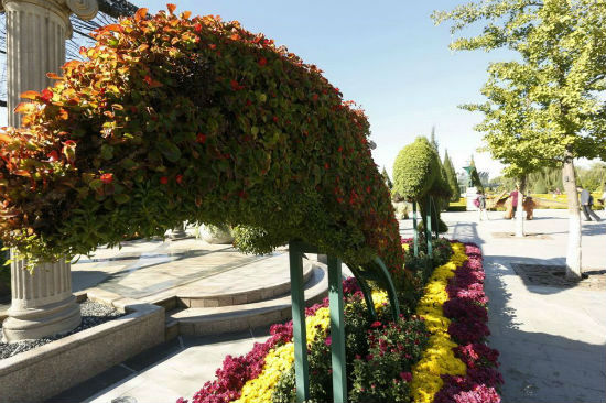 在本届主题为“菊韵悠长,奏响金秋赞歌”的艺菊展上,主办方首次以“音乐”作为展览脉络贯穿全展,以菊花绿雕作为载体。伴着悠扬背景音乐,将一组组菊花配以一幅幅绿雕展现出来,为广大游客呈现出一场在视觉、听觉以及嗅觉上相互呼应、相互传递、相互影响的盛大金秋菊花盛宴。
