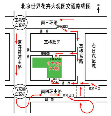 南四环方向:646路、377路世界花卉大观园站;736路、740路、996路、特9路恋日嘉园站向西300米;