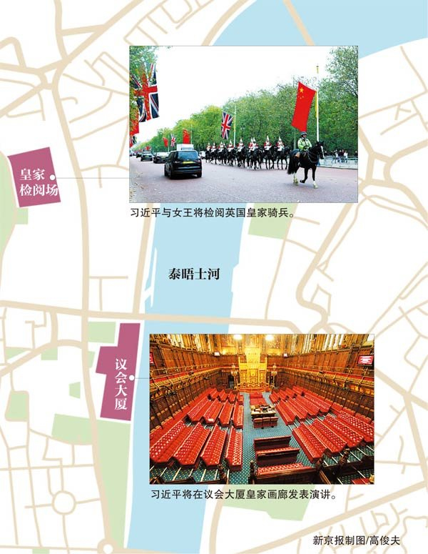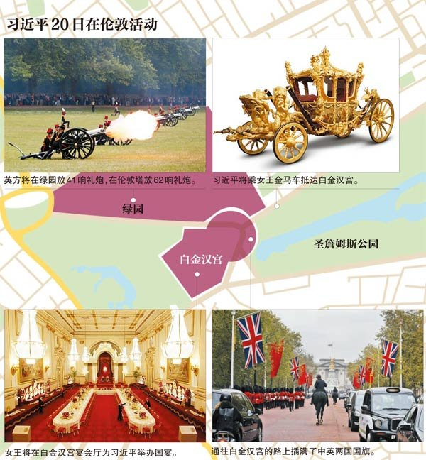 另一处是在伦敦塔还将再放62响礼炮,其中41响与绿园一样,再加伦敦城欢迎习主席的21响,所以这两处加在一起是103响礼炮,这是一个很隆重的仪式。 新京报记者 颜颖颛