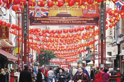 英国的唐人街上更是张灯结彩,挂起了中英两国国旗和条幅,以及一串串红灯笼。