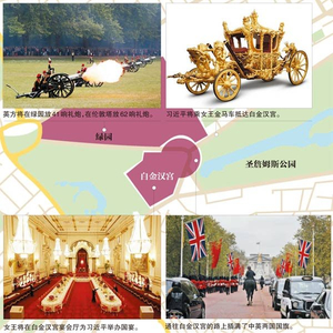 据英国《金融时报》报道,在欢迎仪式结束后,习近平夫妇将乘坐金马车抵达白金汉宫,享用女王主持的私人午宴。