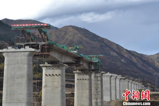 中新网松潘10月28日电 (王梦樵李四华宾青)28日,记者从从中国铁建二十五局获悉,成(都)兰(州)铁路原霸子岷江双线特大桥53-56#墩连续梁中跨顺利合拢,这也是该铁路成都至川主段海拔最高特大桥梁首联连续梁的中跨合拢。