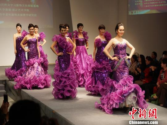 中新网上海11月1日电(孙庆华 许婧)标准的T台,不做任何加宽延展;标准的猫步,不输青春时尚秀场。1日,一场绚丽多彩的中老年T台秀展示活动在东华大学精彩上演。