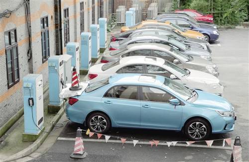 部分新能源车在上海交通大学校区内的公共充电桩充电。新华社记者 丁汀 摄