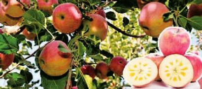 相貌特征:色泽光亮,果面光滑,红中透着黄,表面有黄色的小果点、且个个蒙着尘土,果香浓郁、甘甜味厚、汁多无渣;果核周围有积累糖分形成的糖心儿,吃起来水分充足,又甜又脆
