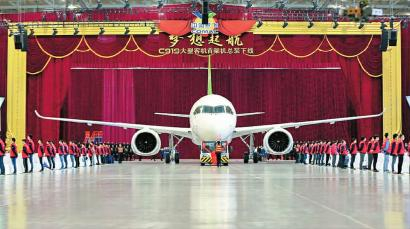 B05版记者从中国商用飞机有限公司获悉,经过7年设计研发,昨天上午,中国自主研制的C919大型客机首架机终于总装下线,这意味着我国跻身成为世界上少数掌握研发制造大型客机能力的国家。