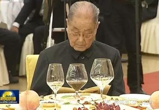 在这些穿西装、系领带的现任和卸任领导人中,身穿灰色中山装的宋平格外显眼。