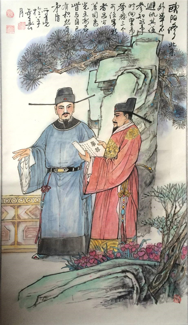 北宋名臣。欧阳修为官光明磊落,廉洁奉公。他任参知政事时,皇帝要他举荐3个可任宰相的人。他外举不避仇,举荐了吕公著、司马光、王安石,而这三个人或与他政见不一,或曾导致他下狱。但欧阳修以国事为重,并不计较个人恩怨,世人无不敬服。