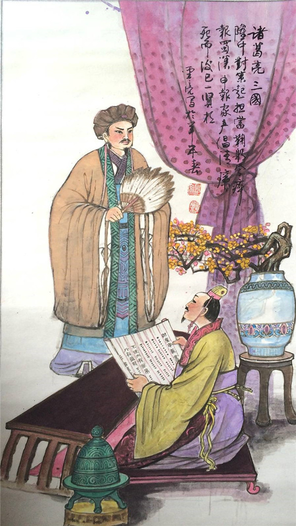 三国时期蜀汉丞相。他身居高位,却自奉甚简,不谋私利。生前,他在给后主的奏章中誓言“不使内有余帛,外有盈财”。在病危时,他立下遗嘱:丧葬力求简朴,只穿便服入棺,不放任何陪葬品。其高风亮节流芳百世。