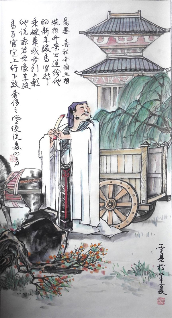 春秋战国时齐国丞相。晏婴身居高位,生活却清廉俭约,从不搞特殊化。他平时上朝总是乘坐一辆劣马拉的车子,有时甚至步行。为此齐景公特意派人送去新车骏马,他却拒而不受,说道:“你让我管理全国的官吏,我深感责任重大,平时我反对奢侈浪费,减轻百姓负担,我若乘坐好车好马,百官便会上行下效,奢侈之风就会泛滥成灾。”