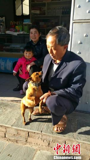 图为一名古城里的老人逗狗。 李玥欣 摄