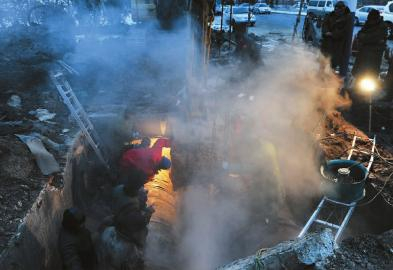“由于这一带管道比较长,所以泄水量较大,有将近4000吨,再加上水温较高,工人要等水温降下来后才能施工。”郝蔚莱说,我们对出现故障的管道进行“套管”,直到23日13点45分,“套管”工作结束,也就是漏点被堵住,管道内可以重新进行注水加压加热。