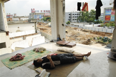 东莞,倒闭后的企业一片萧条,睡在旧厂房中的流浪者。图/CFP