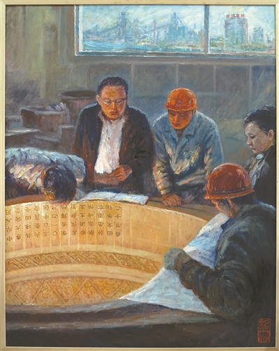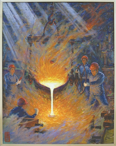 南钢职工艺术家集体创作的大型油画《祭鼎铭鼎铸鼎》近日正式亮相。这是南钢继去年成功铸造国家公祭鼎之后的又一传世之作。