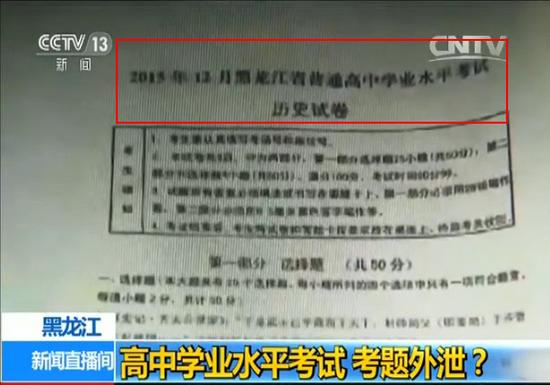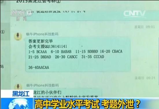 原标题:黑龙江高中学业水平考试泄题 考试进行中答案网上传