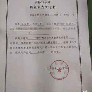 2015年12月,灵宝市公安局作出终止侦查王玉虎案的决定。