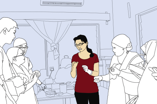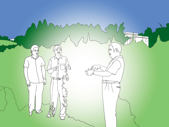 ●抗疟团队成员在培训当地抗疟员。在实施全民服药的过程中,抗疟团队会在当地培训抗疟员以保证高服药率。