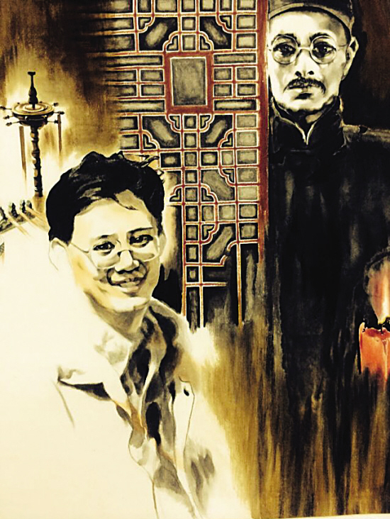■彭玉平的学生为他和王国维创作了这幅画,让二人跨越时空相会。