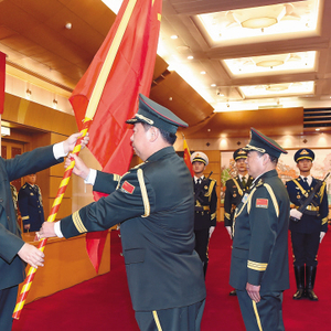 ■这是习近平将军旗郑重授予陆军司令员李作成、政治委员刘雷。新华社发