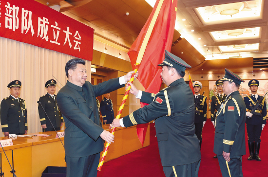 习近平强调,战略支援部队是维护国家安全的新型作战力量,是我军新质作战能力的重要增长点。战略支援部队全体官兵要坚持体系融合、军民融合,努力在关键领域实现跨越发展,高标准高起点推进新型作战力量加速发展、一体发展,努力建设一支强大的现代化战略支援部队。