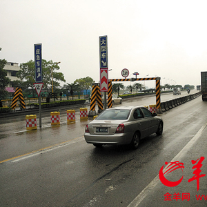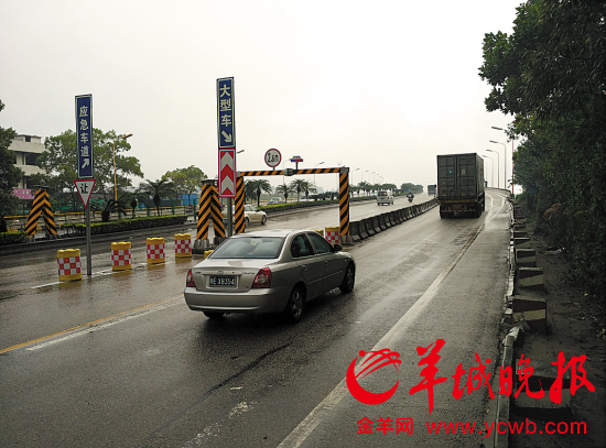 记者了解到,其实进入龙门架前100米设有柔性悬挂物进行警示、亦有缓冲带、警示标志等。高明区恒达交通投资管理有限公司副总经理章向阳也介绍,龙门架的设置是经过路政、交警以及安监部门论证的,限高2.6米则是参照桂丹路金沙大桥旧桥的做法。