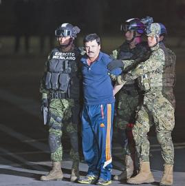 数小时后,古斯曼出现在首都墨西哥城的机场“示众”。他穿运动装,面无表情,双手铐在背后,由多名全副武装的士兵看押。戈麦斯在现场宣布,古斯曼将被押回“高原”联邦监狱。随即,古斯曼被带上一架军用直升机。