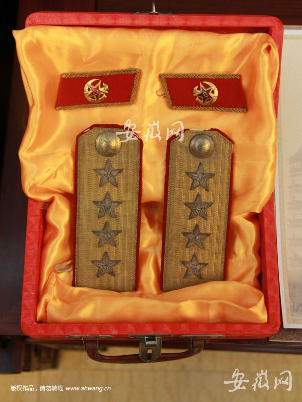 新安晚报 安徽网(www.ahwang.cn)讯日前,北京新四军研究会副会长、新四军军部研究分会会长张晓龙来到黄山市徽州区,向新四军军部旧址纪念馆捐赠其祖父张云逸大将1955年授衔时的肩章、领章。