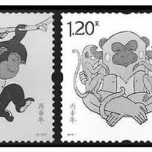 据 他介绍,我国于1980庚申年、1992壬申年和2004甲申年先后发行了三套猴年生肖邮票,今年发行的第四轮猴票是新一轮生肖票的开篇之作。但在票面设 计上跟以往有所不同,两枚邮票共有4只猴的形象,是历年猴年生肖票中猴子数量最多的一次。今年猴票第一枚邮票的图名为“灵猴献瑞”,为一只灵猴捧桃,寓意 福寿吉祥;第二枚邮票的图名为“福寿双至”,为一只母猴抱着两只小猴,实际上也寓意着我国二胎政策的实施,民间也称“二胎猴”。