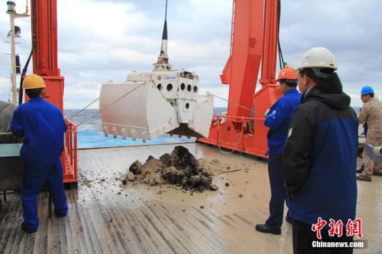 近日的抓斗作业获取了1500米至3000余米海底的岩石和沉积物样品。“采集沉积物样品是为了解其中主要金属元素的含量,推断附近是否存在热液活动”,地质组组长梁锦对记者介绍。
