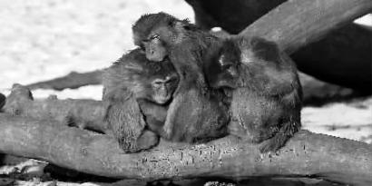 “大寒小寒,抱成一团”,昨天,长春动植物公园的3只猕猴生动诠释了这句俗语 新文化记者 白石 摄