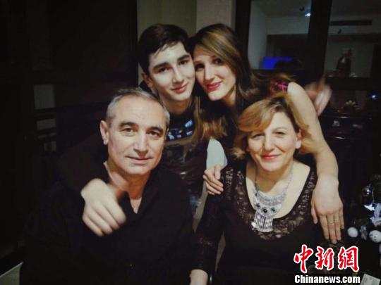 拜年、放鞭炮,亚美尼亚姑娘阿妮带着7个月大的儿子,和父母、弟弟在丈夫张良的故乡——山西省运城市永济市,和丈夫、公婆过了一个充满年味的中国传统猴年春节。图为阿妮和父母、弟弟。 由受访者提供 摄