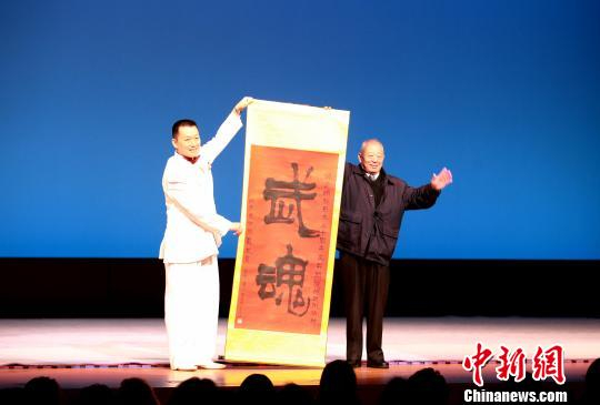 中国武术八段孙建明在东京举行赴日本推广中国武术30周年纪念公演。尹法根 摄