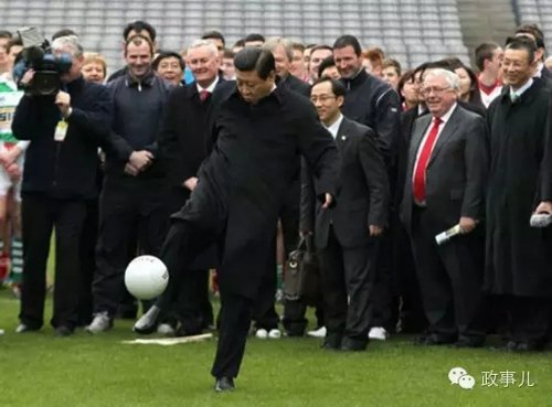 2012年2月访问爱尔兰时,习近平在都柏林的第一项活动,便是参观当地一个体育运动协会。在这次参观中,他再一次走上球场草坪,展示了自己的脚法。