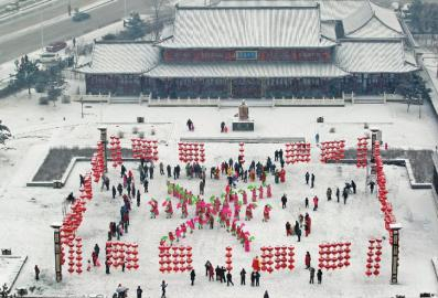 昨日,长春文庙附近,高空俯拍传统秧歌精彩表演 本组图片除署名外 新文化记者 白石 摄