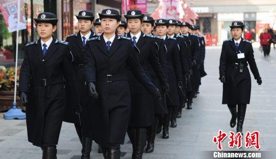 2月25日,兰州女子城管在七里河区商圈执法,她们整齐着装、列队巡查,微笑劝说并清退流动商贩、占道经营的商家们,以女子特有的“柔情”化解城管执法中的冲突。 杨艳敏 摄