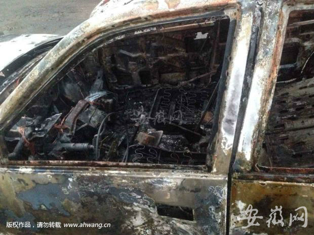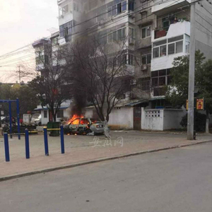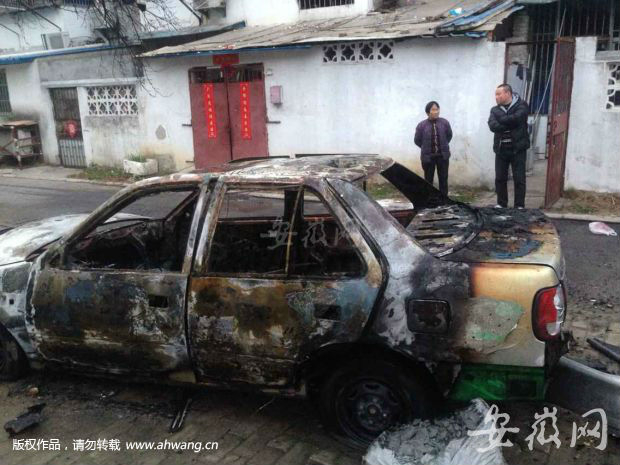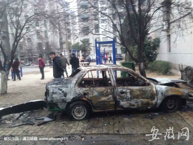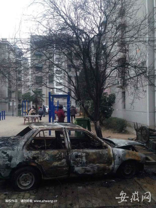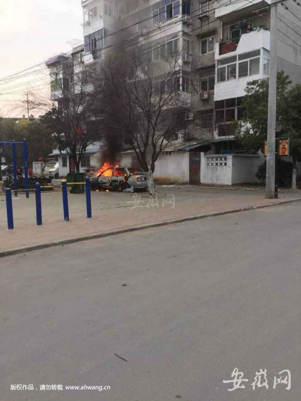 原标题:合肥岳西新村一辆轿车起火被烧成铁架