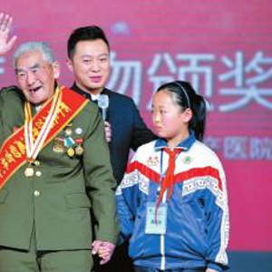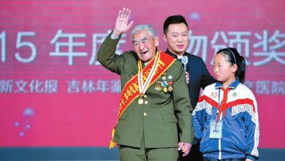 如果说“感动吉林”人物中也有明星,那么非90岁抗战老兵史保东莫属。2月27日上午,一对90后来到颁奖典礼的休息区,女孩径直走到史保东的身边,请求与老人合影。“老人家是我心目中是真正的英雄,他在我心中是最帅的。”女孩说。