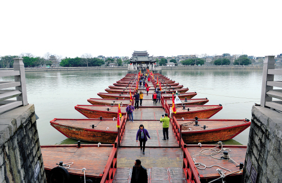 ■广济桥位于潮州古城东门外,横跨韩江,连接东西两岸。中间由24艘木船连接而成。