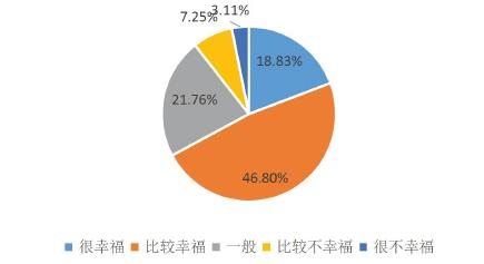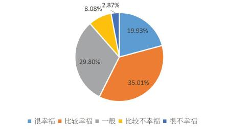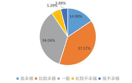 过去一年,全国有50.81%的受访者感到幸福。其中,16.11%感到很幸福,34.70%感到比较幸福。而在合肥市,受访者感觉幸福的比例是58.08%高于全国平均水平。其中,选择很幸福的占20.13%,比较幸福的人占了37.95%。