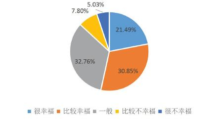 过去一年,全国有50.81%的受访者感到幸福。其中,16.11%感到很幸福,34.70%感到比较幸福。而在郑州市,受访者感觉幸福的比例是55.04%,高于全国平均水平。其中,选择很幸福的占13.25%,比较幸福的人占了41.79%。