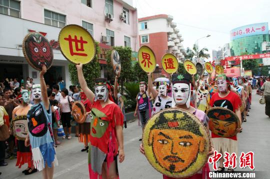 资料图:广西环江毛南族民俗巡游活动。 杨志雄 摄