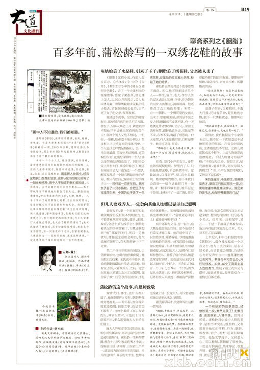 能引用,读起来还要有趣味才行,这就要看作者个人的机敏了。蔡小容评述《石清虚》,先是引用了《红楼梦》中贾赦用卑劣手段抢夺别人藏的扇子,儿子贾琏与其理论,“贾赦大怒,抄起家伙就追打儿子,把脸上都打破了两处”,这时作者笔锋一转,“——也不知破的是谁的脸”,一个一语双关的妙句,显露出她的智慧;而写《阿绣家的杂货铺》,她又通过蒲松龄笔下的市井生活和《聊斋图说》里的插画,借古讽今,淡淡地写道:想那慈禧,坐在无比规整、富丽堂皇的皇宫里,她事实上没有日子可过。她在图画上观看阿绣的店,琳琅满目小百姓的生活,也一定深感有趣,不忍心写下个“拆”字。