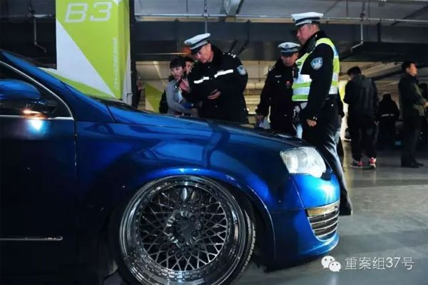 有现场人士说,当时交警怕他们不认,还带了拖车一起去,开始询问那些车是谁的,周围围了一群年轻人,都不说话。后来,交警说,我们拖车了。这才有人上前认领车辆。对于交警指出的涉嫌非法改装处罚,当事人也没有异议。