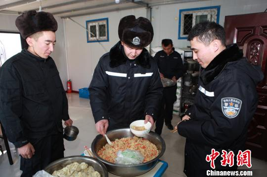 3月13日14时许,记者看到依里合木开车为服务站的23位民警送来了抓饭和薄皮包子。他一下车就从车上端出抓饭和包子,并招呼民警赶紧端进去。“大家快趁热吃,凉了就不好吃了。”