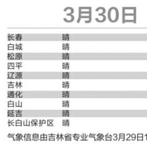 今日,我省大部分地方依然春光明媚,气温也温暖,只是白山地区东部、长白山保护区部分地方会有小雨。明天,气温会来个起跳,一下子达到20℃,会惊得你不知道该穿啥。不过,这样的温度,会在31日,因为小雨的来临,戛然而止。31日夜间到4月1日白天,全省多云有时阴,松原地区东部、长春、四平、吉林地区西部有小到中雨,白城、松原地区西部、辽源、吉林地区东部、通化地区北部有小雨。气温回落,新一轮的冷空气无情地再次占据上锋,用那个春季常出现的词叫“倒春寒”可能随时会来。4月1日开始气温会明显下降,所以不能不防,提醒您一定要注意天气变化,添减衣物。