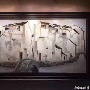 【这幅油画卖了2.36亿港元!】今晚7点,吴冠中《周庄》油画以1.3亿元起拍,经多伦竞价,最终2.36亿港元成交,刷新中国油画拍卖纪录。此作画于1997年,尺寸为148x297cm,画面以黑、白、灰三种颜色为主,在点、线、面的形式元素组成中,不仅看得到江南的小家碧玉,更看得到江南人的大气,是艺术市场上目前所见最大尺幅的吴冠中佳构。拍前便备受关注,为该专场中的重中之重。京华记者易小燕