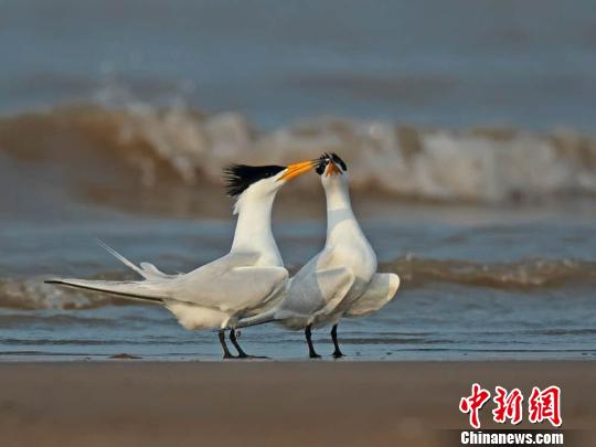 图为中华凤头燕鸥“谈恋爱”,资料图。 福建观鸟会供图 摄
